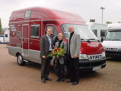 Mehr als 30.000 Besucher hatten sich während der Messe an diesem Gewinnspiel beteiligt. Nach Abschluss der Messe fand die Auslosung statt. Die Gewinnübergabe fand am 28. September im Hymer-Zentrum B 1 in Mülheim an der Ruhr statt. Aus den Händen von Kai Dhonau, Leiter der Hymer-Verkaufsniederlassung, erhielten die Gewinner, das Ehepaar Sosniok aus Düsseldorf, die Schlüssel für den Hauptgewinn.