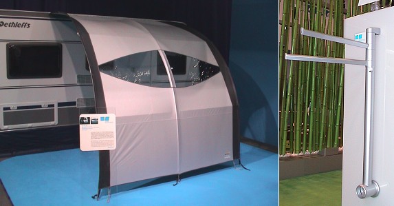 Funktionale und ansprechende Camping-Produkte ausgezeichnet Zwei der prämierten Produkte: Das Vordach "Ultra Light" von Wigo-Zelte und der neue Handtuchtrockner von Truma. (Fotos:Richter(hr) Gutes Design spielt auch beim Camping und Caravaning eine zunehmend wichtige Rolle. Dem trägt die Messe Düsseldorf schon seit einigen Jahren mit dem "Caravaning Design Award" Rechnung. Gestern wurde im Rahmen der Eröffnung des 45. Caravan Salons der Designpreis zum dritten Mal für besonders innovative, funktionale und ansprechende Produkte der Reisemobil- und Caravanindustrie vergeben. Das Spektrum der von einer vierköpfigen Fachjury ausgewählten Produkte reicht vom Reisemobil bis zum Handtuchtrockner, vom Vorzelt bis zur Satellitenschüssel.