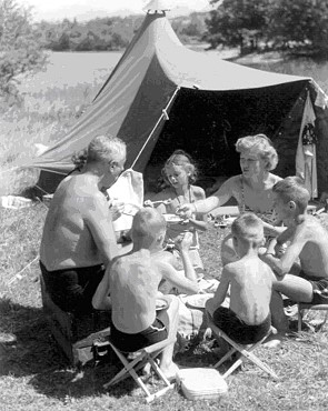 60 Jahre DCC – 60 Jahre Camping in Deutschland Der erste Präsident des DCC, Dr. Max Eckert, mit seiner Familie 1949 bei der ersten vom DCC organisierten Rallyeveranstaltung am Staffelsee in Bayern. (Foto:privat)(hr) (md) Sein 60-jähriges Bestehen feiert der Deutsche Camping Club (DCC) im Rahmen des Caravan Salon in Düsseldorf.