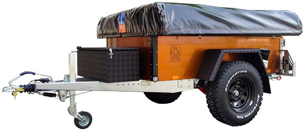 Zelt-Anhänger in Spezial-Ausführung (Foto: 3DOG camping GmbH & Co. KG)(red) Basis des Burnt-Orange OffRoaders ist der bewährte und für unwegsames Gelände geeignete Spezial-Anhänger, der in Handarbeit gefertigt wird. Er verfügt über ein extrem robustes V-Deichsel-Fahrwerk und zahlreiche technische Besonderheiten, die von den Hamburgern um Firmenchef Julian Nocke speziell konzipiert und entwickelt wurden. So besteht das komplett feuerverzinkte Fahrwerk des europaweit zugelassenen Anhängers aus einer Kombination von Komponenten, die von den Hersteller Al-Ko und BPW eigens für 3DOG camping hergestellt werden. Die wartungsfreie Achse hält mit ihren geschmiedeten Schwingen auch den massiven Belastungen beim Einsatz in extremem Gelände stand.