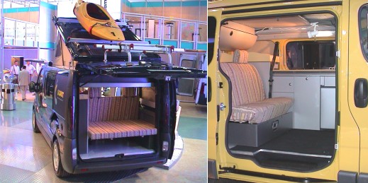 Neuer Minibus-Ausbau von BavariaCamp (Fotos:Richter)(hr) "Scout" nennt BavariaCamp einen neuen kompakten Campingbus auf Basis des Opel Vivaro, Renault Trafic und Nissan Primastar. Die schnittigen Vans gibt es mit tiefgaragentauglichem Schlafaufstelldach (Gesamthöhe 1990 mm). Vier eingetragene Sitzplätze machen den handlichen Camper alltagstauglich. Bei aufgestelltem Dach gibt es oben ein 2,00 mal 1,42 Meter großes Bett. Das Bettenmaß unten beträgt 1,90 mal 1,30 Meter.