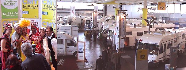 Europa zu Gast in Stuttgart Repräsentanten der Partnerländer posieren vor den Kameras. Den "Treffpunkt Reisemobilwelt" gibt es in den Messehallen 12 und 14. (Fotos:Richter)(hr) Die "Internationale Ausstellung für Caravan - Motor - Touristik" - kurz CMT - öffnet morgen um 9 Uhr auf dem Stuttgarter Killesberg ihre Pforten. Bis 25.Januar werden täglich von 9 bis 18 Uhr über 1.400 Aussteller aus 82 Ländern ihre Angebote rund um Freizeit und Reisen präsentieren.