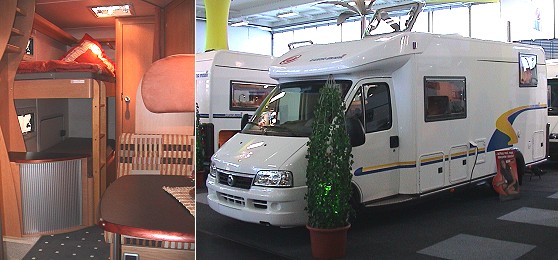 Der neue Teilintegrierte Contura 662 HB zielt auf das reiselustige Paar. Unter dem Doppelbett im Heck bietet er eine geräumige Garage. Die Sitze im Fahrerhaus sind drehbar und ergeben mit der L-Sitzbank eine gemütliche Sitzgruppe um den schwenkbaren Tisch. Trotz großzügigem Platzangebot kommt der neue Contura mit einer Gesamtlänge von 6,53 Metern aus. Dank neuer Tiefrahmenkonstruktion ist er trotz Doppelboden nur 2,79 Meter hoch. Er ist ab 52.500 Euro zu haben.